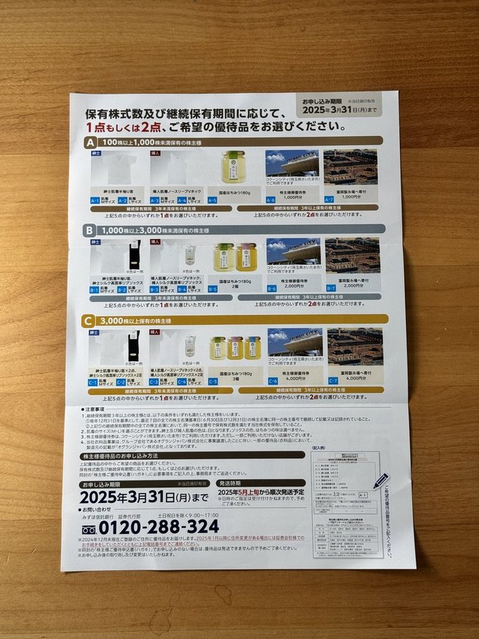 株主優待の希望商品は、同封のハガキで申込みが必要で、締め切りが3月31日ということでした。