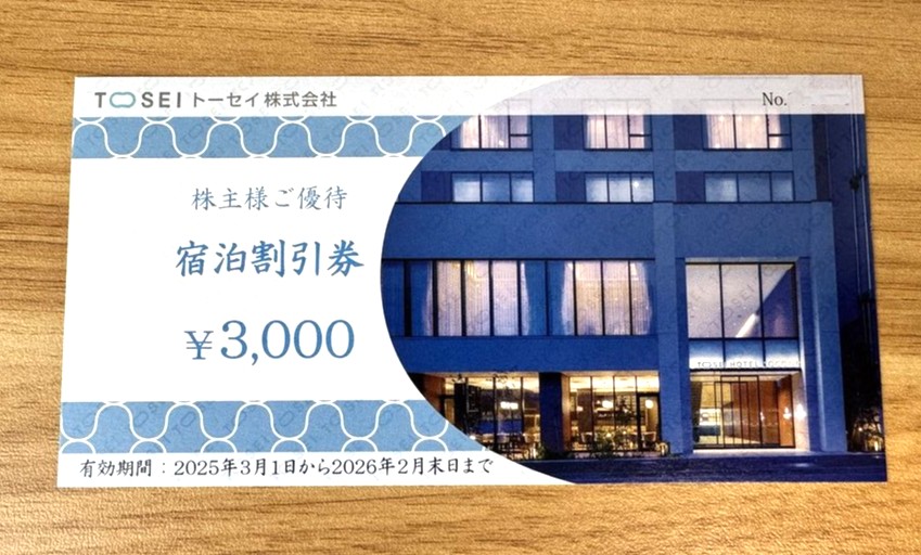 トーセイの株主優待は、「ホテルで使える割引券」がメインで、さらに長く持つことでクオカードももらえるお得な内容。